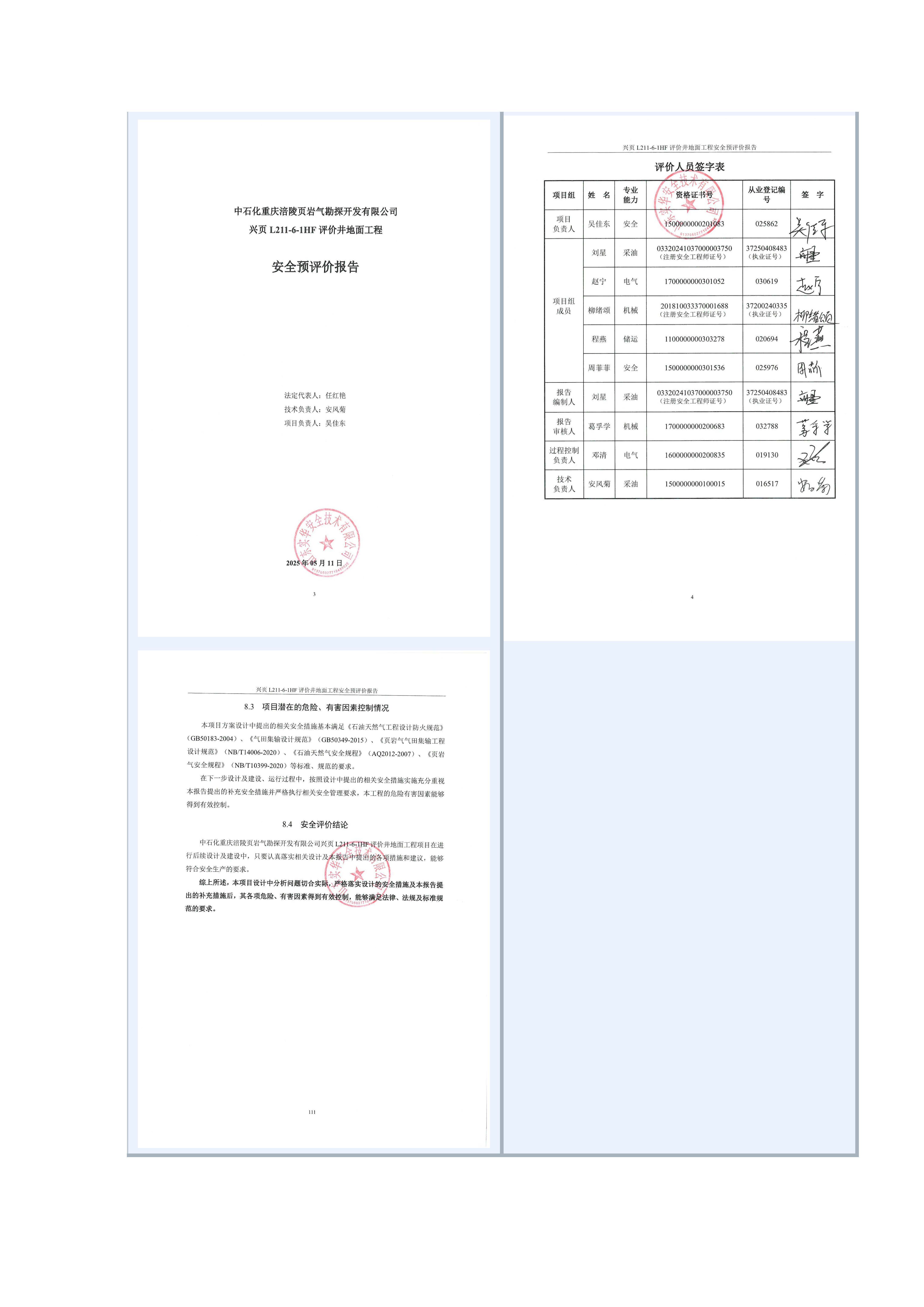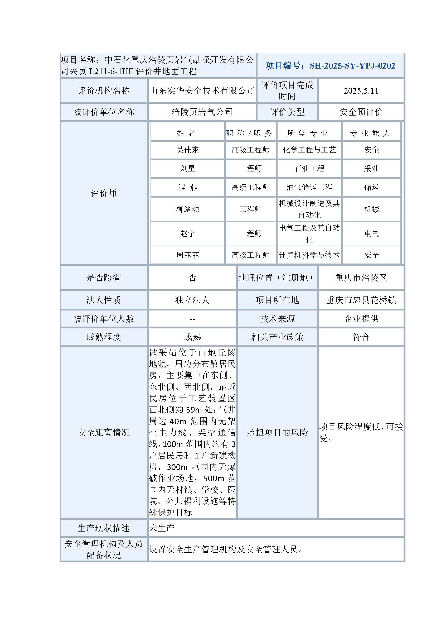 中石化重慶涪陵頁巖氣勘探開發有限公司興頁L211-6-1HF評價井地面工程安全預評價