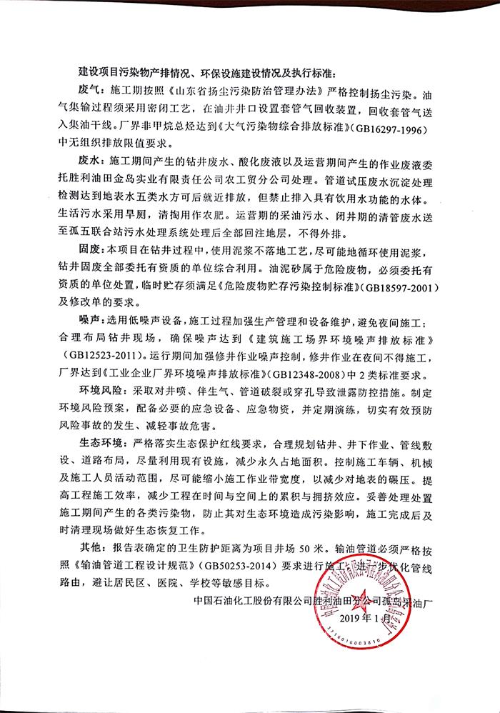中國石油化工股份有限公司勝利油田分公司孤島采油廠孤島油田南區渤76-斜240井和南19-斜504井工程竣工公示