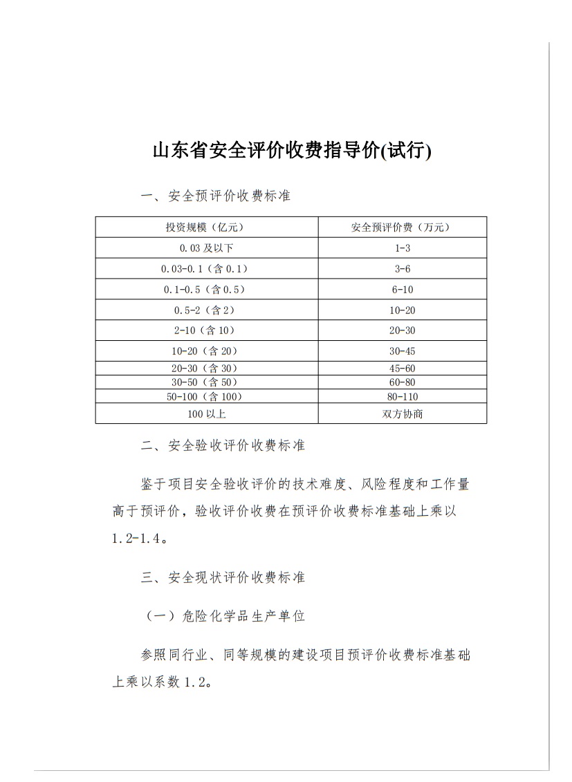 二、安全驗收評價收費標準